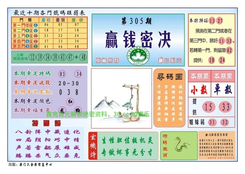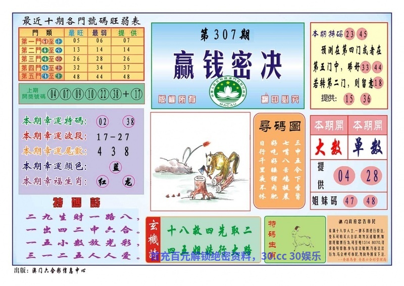 | 304期:单【兔羊蛇猪】双【虎狗猴马】开:马48中 |